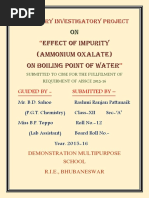 I understand the pain of writing piles of pages , well you can also make someone to write your project and you could use the time for preparing for exams. As we are living in the 21st century where learning and memorizing is no longer fundamental to teach the students. (chemistry projects) class 12th chemistry projects for 2009 exams (measuring the amount of acid in vinegar by titration) (chemistry projects) class 12th chemistry projects for 2009 exams (charles's law: This is to certify that master hiren p patel ,a student of class xii of the atomic energy central school, roll no.: I am providing you my chemistry practical notes in these notes i have completed all the chemistry experiments and practical which is useful for cbse class 12 students and also the voice of chemistry practical this will help you to prepare and get good marks in your chemistry practical exams and in this i have also given you the voice and some important chemistry practical questions. Chemistry projects for class 12 cbse. Project report quantity of casein present in various samples of milk chemistry projects (cbse) 12th class on chemistry project quantity of casein in different samples of milk contains vitamins, proteins, carbohydrates, fats and the major milk protein casein, science project report Chemistry hand written practical experiment cbse class 12th cbse chemistry practical pdf chemistry project file pdf chemistry lab practical file pdf for all of you and chemistry practical experiment file pdf has been made available for all class 11th and class 12th students to download for free. I owe a deep sense of gratitude to my chemistry teacher whose valuable advice, guidance help me in doing this project from conception to completion. As a student of class xii, i did this project as a part of my studies entitled to study the digestion of starch by salivary amylase and effect of temperature and ph on it. I have attached the complete project report for your reference and you can download it for free here. Name nagesh agrawal class xii section b roll number title content of cold drinks available in the market submitted to dr. The topic of this project is colloids.